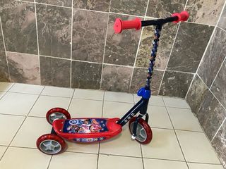 Trotinete infantil com o tema Patrulha Pata. Ideal para os mais novos se divertirem. - Design com personagens da Patrulha Pata. - Três rodas para maior estabilidade. - Guiador ajustável em altura. - Punhos em borracha para melhor aderência.