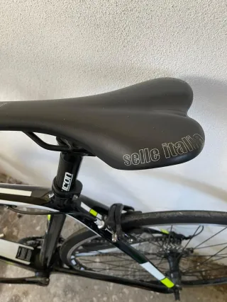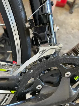 Bicicleta de estrada com componentes Shimano Sora. - Quadro em preto. - Pneus com faixa refletora. - Pedaleira dupla.