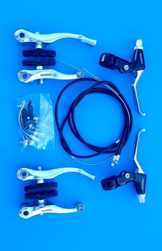 Conjunto de travões V-Brake em alumínio com manetes para Bicicleta BMX old school BSA Triumph Philips Humber GAC Terrot Akimoto Vilar Ucal Derby Phanter Rabasa Super cil Empório Metta Motoretta Florida California Haro GT mondraker Berg Fishbone Orbita, Esmaltina Confersil Sirla EFS Orbea BH Monty Zeus Shimano Campagnolo Powerlite Hoffman Bikes Redline Peregrine Skyway Tioga Mongoose Dyno KHE FlyBikes Fusion Akisu Araya Sunn Federal Primo Standard Basic Dia-Compe Odyssey S&M Michelin Mittas Kenda Ya maha byz Mbk Motobecane Decathlon ACS DK Tange TNT T1 Suntour Aprilia Suzuki