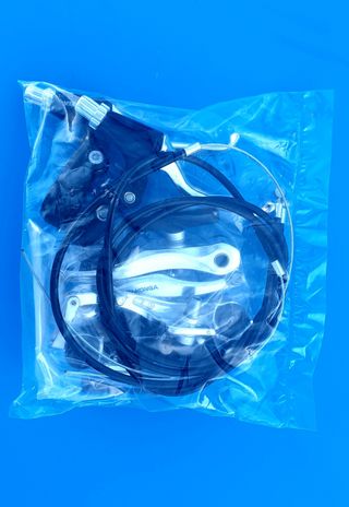 Travão de disco hidráulico Shimano Travão traseiro ou frontal Utiliza óleo mineral Comprimento mangueira 1350mm Modelo: M485