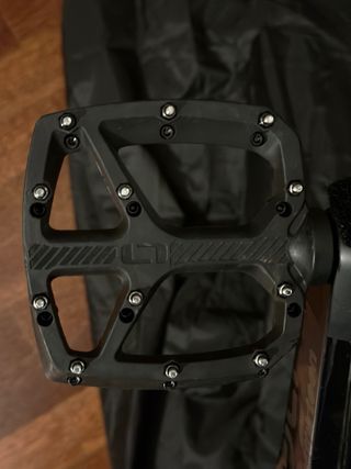Pedal de bicicleta ON OFF em resina preta. - Design moderno e resistente. - Superfície com pinos para maior aderência.