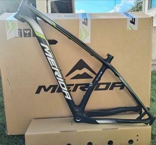 Quadro Merida Big Nine SE carbono. Tamanho M Quadro com alguns riscos estéticos Quadro para roda 29 Oferta de: Espigão de carbono Merida Movimento pedaleiro Shimano XT Caixa de direcção FSA Aperto de espigão carbono Posso enviar fatura da minha compra...