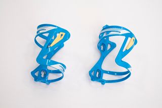 Par de portabidões Specialized Zee Cage II, em azul e com detalhes em branco e amarelo. Estão em bom estado. - Modelo: Specialized Zee Cage II - Cor: Azul com detalhes em branco e amarelo - Quantidade: 2 unidades