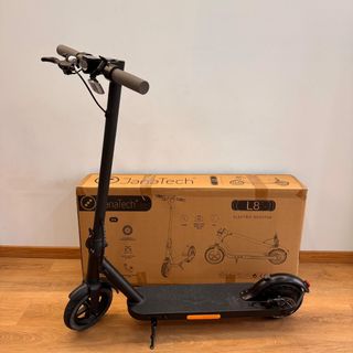 Trotinete elétrica JanaTech L8, nova e na caixa original Modelo: L8 Marca: JanaTech, Alumínio - Velocidade máxima: 25 km/h - Autonomia máxima: 18 km - Motor: 350W - Travões: Disco e elétrico - Pneus: 8.5 - Peso máximo suportado: 120 kg - Dobrável - Ecrã multifunções - Suspensão dianteira - Luzes LED dianteira e traseira
