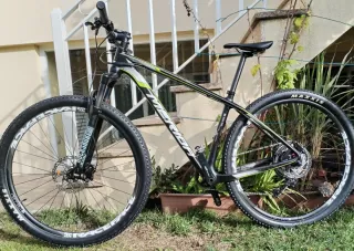 Bicicleta Btt Merida Big Nine SE - Cuadro de carbono. - Tamanho M - Grupo Shimano XT 11 vel - Travões Shimano 501 - Espigão Carbono Merida - Suspensão Rock Shox Judy com revisão feita com todos os componentes mudados Bicicleta em excelente estado de conservação...