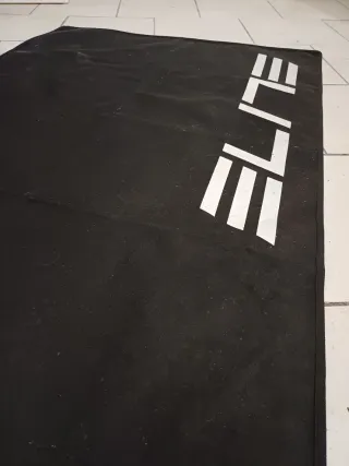 Tapete preto da marca Elite, ideal para uso com rolo de treino. - Cor preta - Logo Elite em branco - 180x90 cm