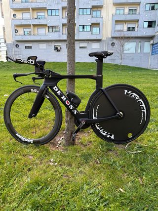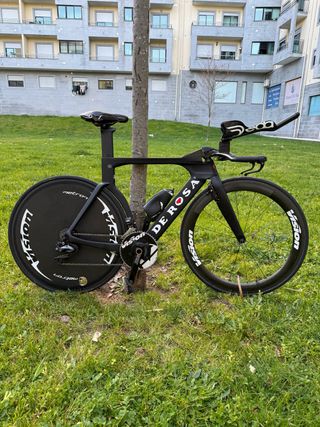 Bicicleta de contra relógio De Rosa Tamanho M, tenho 1,85 de altura Bicicleta com potenciometro incluido Bicicleta em excelente estado, com forqueta e manete esquerda completamente novas, com fatura da forqueta da marca Extensores DEDA em excelente estado Pedais look não incluídos Possibilidade adicionar rodas carbono ZIPP + 400€ Possibilidade de adicionar pedais LOOK Cerâmico TI + 350€