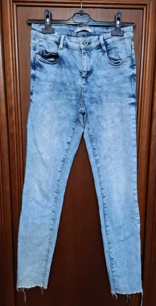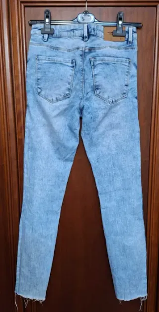 Calças de ganga Lefties em tamanho 38. Com um lavagem moderna e corte skinny. Usadas apenas uma vez. - Lavagem acid wash. - Corte skinny. - Barra desfiada.