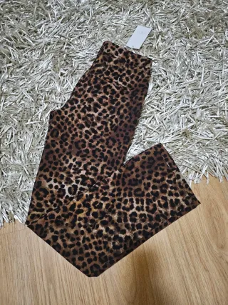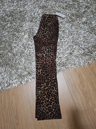 Calças da Zara com um elegante estampado animal print. - Tamanho S. - Padrão de leopardo. - Tecido acetinado. - Corte ligeiramente flare. Novas com etiqueta.