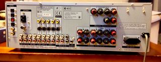 Receptor de home theater com Dolby Digital EX, DTS-ES e Pro Logic II 90 watts x 7 em 8 ohms (20-20.000 Hz) a 0,09% THD. Sem colunas. Processador de 32 bits controle remoto 5.1 canais comutação de vídeo componente (2 entradas, 1 saída, largura de banda de 80 MHz) entradas digitais: 3 ópticas, 2 coaxiais saída digital óptica 3 entradas de áudio e 4 entradas A/V (incluindo 3 S-video e 1 painel frontal) sem entrada phono Controle A1II 30 predefinições AM/FM 2 conjuntos de saídas de alto-falantes principais terminais de ligação compatíveis com plugue banana