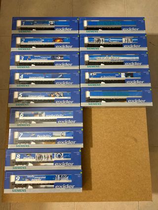 Vagones de tren a escala HO marca Roco, colección completa de 14 vagones, nuevos en sus cajas. Se vende únicamente la colección completa.