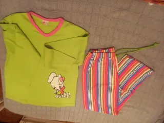 Conjunto de pijama feminino com estampa divertida. - Blusa de manga comprida verde com gola rosa. - Calça listrada em tons vibrantes de rosa, azul, verde e branco. - Detalhe de personagem fofo na blusa com a frase SO QUIET!. - Cordão para ajuste na cintura da calça.