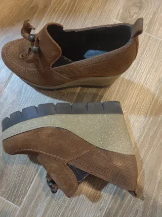 Sapatos camurça salto cunha castanhos