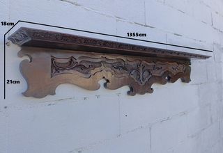 Artigo bastante antigo, usado em excelente estado, com marcas do tempo e uso, apresentando pelo 2 partes que já foram alvo de restauro (desconhece-se há quanto tempo) à direita da zona central e numa das pontas mas imperceptíveis à primeira vista. Foi alvo de tratamento contra o bicho e aplicado óleo de cedro. Pesa 7,380kg. Mede 1355mm comprimento x 210mm altura x 180mm profundidade. Veja também as minhas restantes peças decorativas, ateste a minha classificação de vendedor e a antiguidade enquanto utilizador registado.
