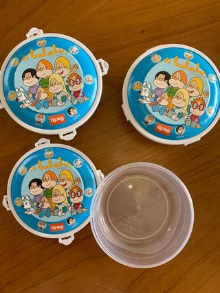 Recipientes de plástico com tampa Capacidade de 450ml cada Tipo Tupperware Zigzag Idealmente para lanches