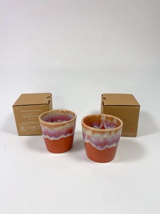 Nespresso - Copos Espresso Costa Nova Cerâmica Red Sunset (pack 2 unidades) Copo Nespresso 70ml em cerâmica de Grés da Costa Nova. Grés de alta qualidade de alta cozedura adequado para uso intensivo. Adequado para máquina de lavar louça, forno, congelador e microondas. Resistente a lascas. Superfície vitrificada durável. Alta resistência ao choque térmico. Propriedades higiénicas ideais. Feito em Portugal. Capacidade: 70ml