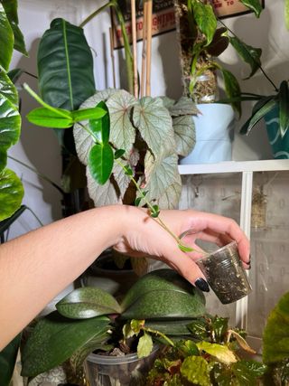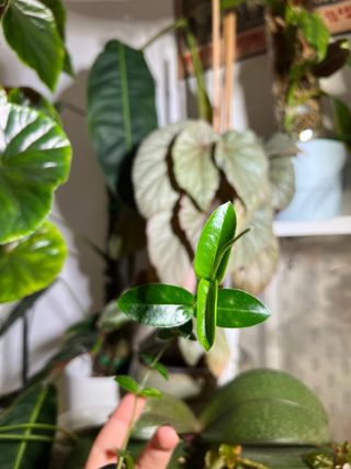 Corte enraizado e em crescimento de Hoya bella