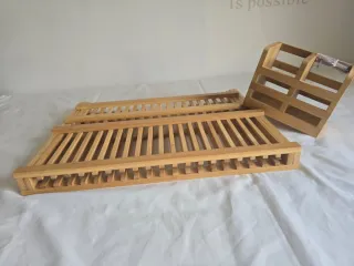 Conjunto de escorredor de loiça e porta-talheres em bambu, ideal para a sua cozinha. O escorredor é dobrável para fácil arrumação. Novo, sem uso! Medidas:43x34x8.4cm) - Escorredor de loiça em bambu - Porta-talheres com divisórias - Material natural e sustentável