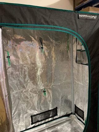 Tenda de crescimento de 120x60x180m da marca Mars Hydro. Usada desde Setembro de 2025. Em impecáveis condições. Único dano que tem é um dos cordões das aberturas laterais que foi roído pela gata. As luzes, estante, peças de acrílico e as plantas não estão incluídas!!! Deixo apenas as fotos com as plantas e tudo montado para terem a perceção do tamanho e espaço da tenda. Última foto é a foto tirada do site da Mars Hydro. Será desmontada e embalada com os maiores dos cuidados. Preço semi negociável