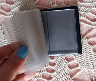Organizador de bolso para cartões de visita constituido por: * 10 bolsas X 2 para arquivar/ organizar um total de cartões = 20 * 20 versos das bolsas que também são arquivadores Tudo isto permite organizar/ arquivar um total de 40 cartões Ps- não dispõe de separadores alfabéticos Seleccione 6 produtos de 1.5€ ( assinalado com ●) e pague apenas 5 produtos