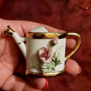 Lindo regador decorativo em limoge Muito pequeno Linda flor em relevo