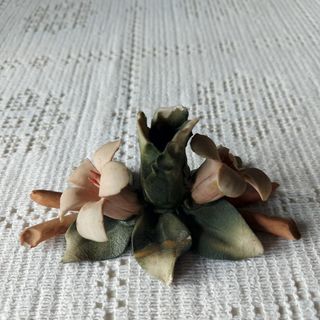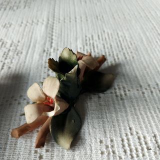 Castiçal em flores de porcelana Tem 2 folhas escanadas mas sem grande relevancia. Vela tem que ser muito estreita