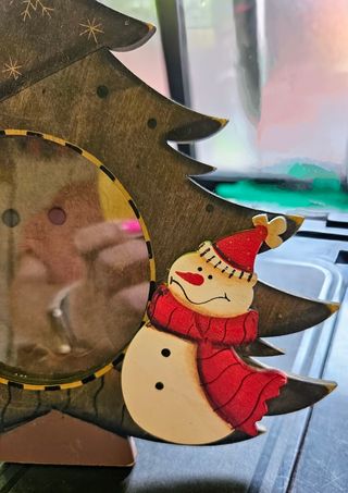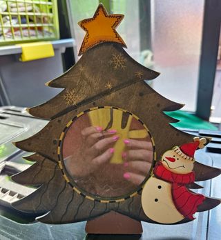 Lindos porta-retratos temático de Natal em madeira. Ideal para decoração natalina! - Formato de árvore de Natal. - Perfeito para fotos de momentos especiais.