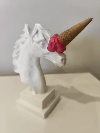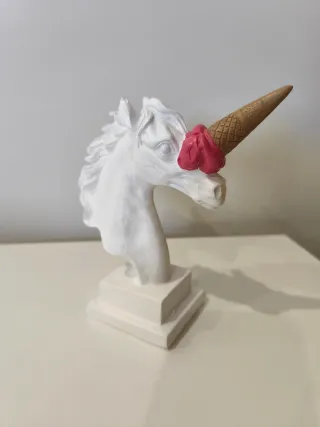 Escultura decorativa moderna em formato de busto de unicórnio, com design criativo e divertido, destacando um original cone de gelado no chifre — perfeita para dar personalidade a qualquer espaço. Produto NOVO! Produto Premium! Ideal para: ✔ Sala de estar ✔ Quarto ✔ Escritório ✔ Estantes e prateleiras ✔ Decoração moderna e jovem Peça elegante em tom branco com detalhe colorido que cria um contraste muito apelativo. 📏 Altura aproximada: 15 cm 🎨 Estilo moderno / criativo 📦 Em excelente estado Uma peça diferente que chama a atenção e dá um toque artístico ao ambiente. Material de Excelente qualidade! Envio Rápido!