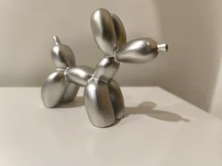 Escultura decorativa em forma de cão estilo “balloon dog”, prateado moderno e elegante. Ideal para decoração de interiores, secretárias, prateleiras ou como peça de destaque em ambientes minimalistas e contemporâneos. 📏 Tamanho: 7 x 8 cm ✨ Estado: Novo 🎁 Excelente opção para oferta Peça decorativa moderna que valoriza qualquer espaço.