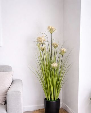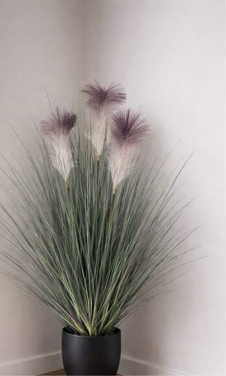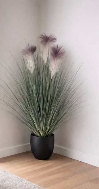 Planta artificial alta com um vaso preto elegante. Perfeita para dar um toque de natureza a qualquer espaço. - Folhagem verde densa e realista. - Flores decorativas em tons de roxo e branco. 86 cm altura