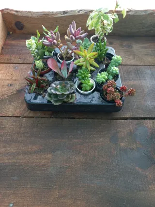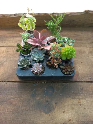 Conjunto de 12 plantas suculentas + 1 planta incenso oferta - Diversas espécies e cores. - Ideal para iniciantes em jardinagem. - Cuidados fáceis. - envios sem macetas para nao ultrapassar o peso permitido de transporte. - Envios em 2 dias para Portugal, Espanha...