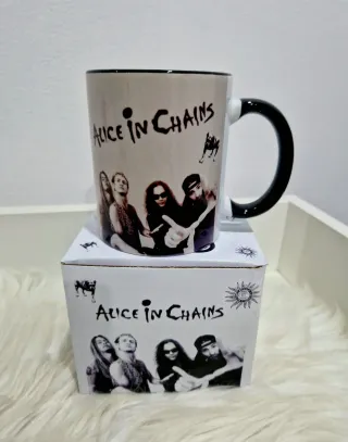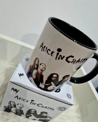 Caneca com a banda Alice in Chains. - Estampa da banda. - Design com a logo da banda.