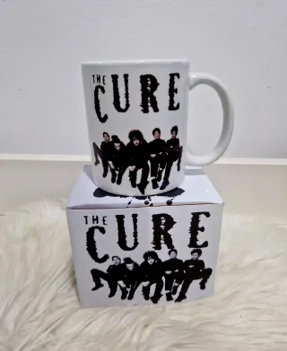 Caneca com a arte da banda The Cure. - Design com a banda em preto e branco. - Estampa com o logo The Cure.