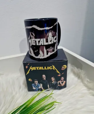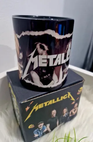 Caneca com estampa da banda Metallica. - Design com a logo e membros da banda. - Acabamento em cerâmica.