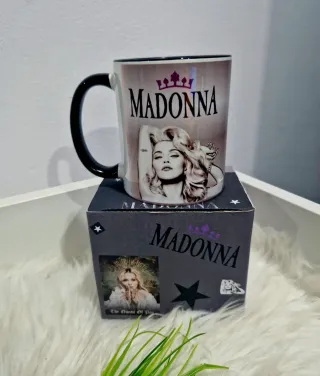 Caneca com a icônica cantora Madonna. Perfeita para fãs da Rainha do Pop. - Design exclusivo com imagem da Madonna. - Alça e interior da caneca em preto.