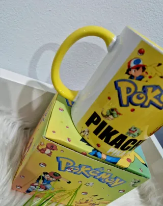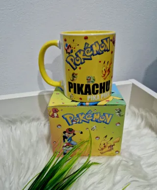 Caneca temática de Pokémon, com design vibrante e divertido. - Estampa do Pikachu e outros personagens. - Alça amarela. - Ideal para colecionadores e fãs da série.