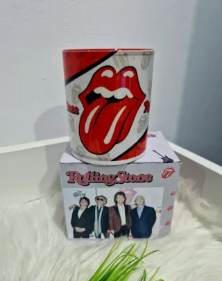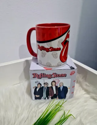 Caneca com o icônico logo dos Rolling Stones. - Design com o famoso símbolo dos lábios e língua. - Estampa repetida do logo em tons de cinza e branco. - Interior da caneca em vermelho.