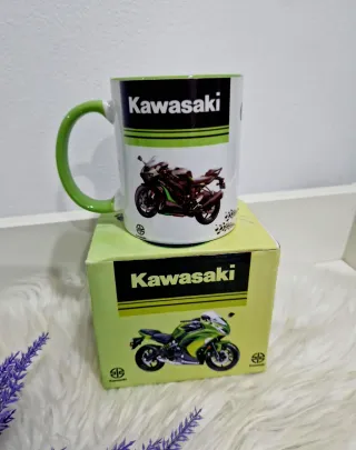 Caneca com design inspirado na Kawasaki. - Detalhes em verde e branco. - Feita em cerâmica.