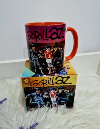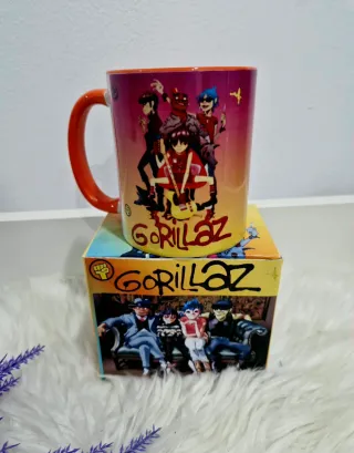 Caneca com estampa da banda Gorillaz. Possui um design vibrante e colorido. - Estampa da banda Gorillaz. - Alça e interior em tom laranja. - Detalhes multicoloridos na arte.