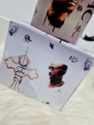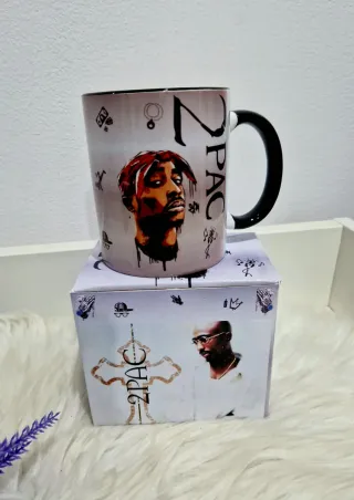 Caneca com design exclusivo do rapper Tupac Shakur. - Estampa do artista. - Detalhes gráficos temáticos.
