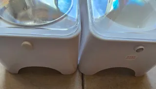Alimentador automático para animais de estimação com sensor de movimento. Tampa com abertura que permite que os alimentos fiquem protegidos. A tampa abre ao detectar movimento. Permite ajustar o tempo que a tampa se mantém aberta após deixar de detectar movimento, para facilitar o treino do animal. Com 1 taça de aço inoxidável e 1 de cerâmica, ajustadas a um ângulo que não força a coluna do animal. Os alimentadores são carregados via USB-C e a carga dura, normalmente, cerca de pouco mais de 1 mês (varia conforme o uso do animal). Preferencialmente, vendo o conjunto, mas poderei separar.