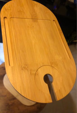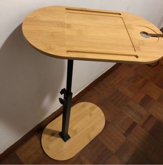 Mesa de apoio muito útil para diversas situações. - Tampo em bambu com design moderno. - Base e haste em metal. - Altura ajustável.