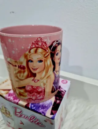 Caneca temática da Barbie, com estampa de Pop Star. - Design vibrante com a personagem Barbie. - Detalhes em rosa e estrelas. - Ideal para fãs da Barbie.
