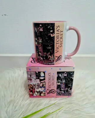 Caneca com design exclusivo da Victoria's Secret. - Estampa com colagem de fotos e logo. - Alça e interior na cor rosa.