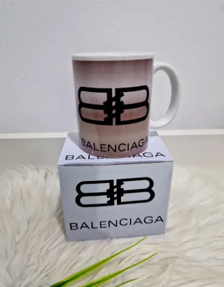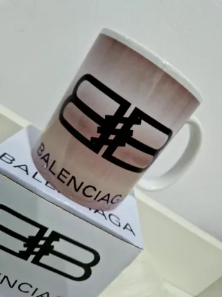 Caneca com design moderno e elegante. - Estampa com o logo BB da Balenciaga. - Detalhes em degradê bege e branco.
