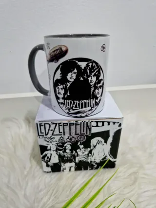 Caneca com design inspirado na banda Led Zeppelin. - Estampa com a banda e o logo. - Interior e alça em cinza.
