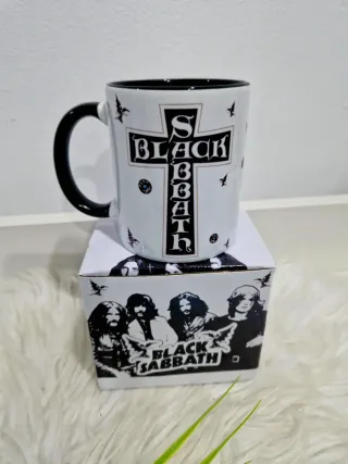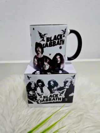 Caneca com a temática da banda Black Sabbath. Perfeita para fãs de rock. - Estampa com a banda e o logo. - Design exclusivo.
