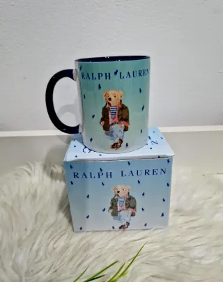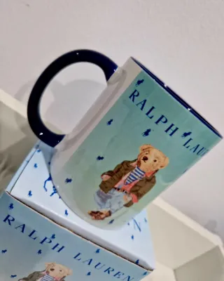 Caneca da Ralph Lauren com estampa de urso. - Design exclusivo com o icônico urso da marca. - Detalhes em azul e marrom.