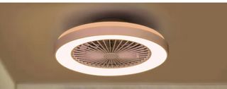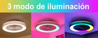 Ventilador de teto moderno com função de iluminação LED, ideal para qualquer divisão. - Design circular elegante. - Três modos de iluminação distintos. - Combina ventilação e luz num só aparelho.
