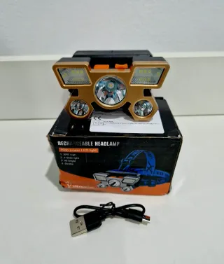 Lanterna de cabeça recarregável com luz LED de alta potência. Possui vários modos de iluminação para diferentes necessidades. - Modo XPE alto - Modo luz lateral - Modo brilho total - Modo estroboscópico